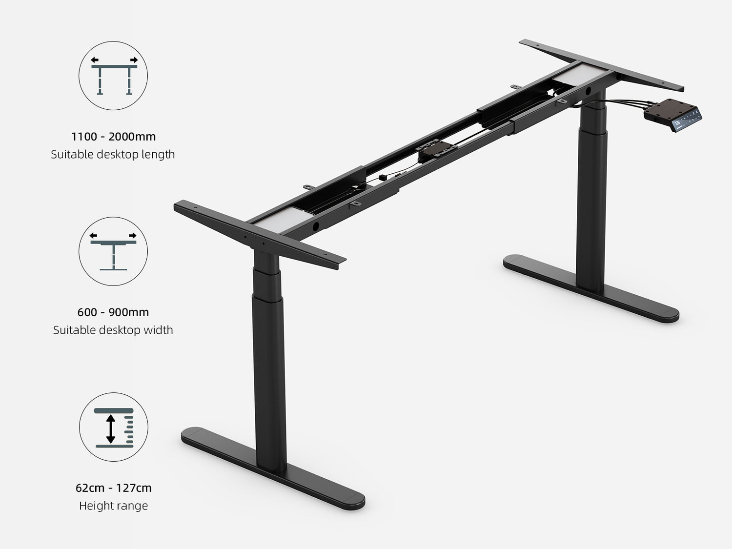 - The dual motor system provides high-precision control of the desk legs and ensures its smooth and synchronized lifting process.