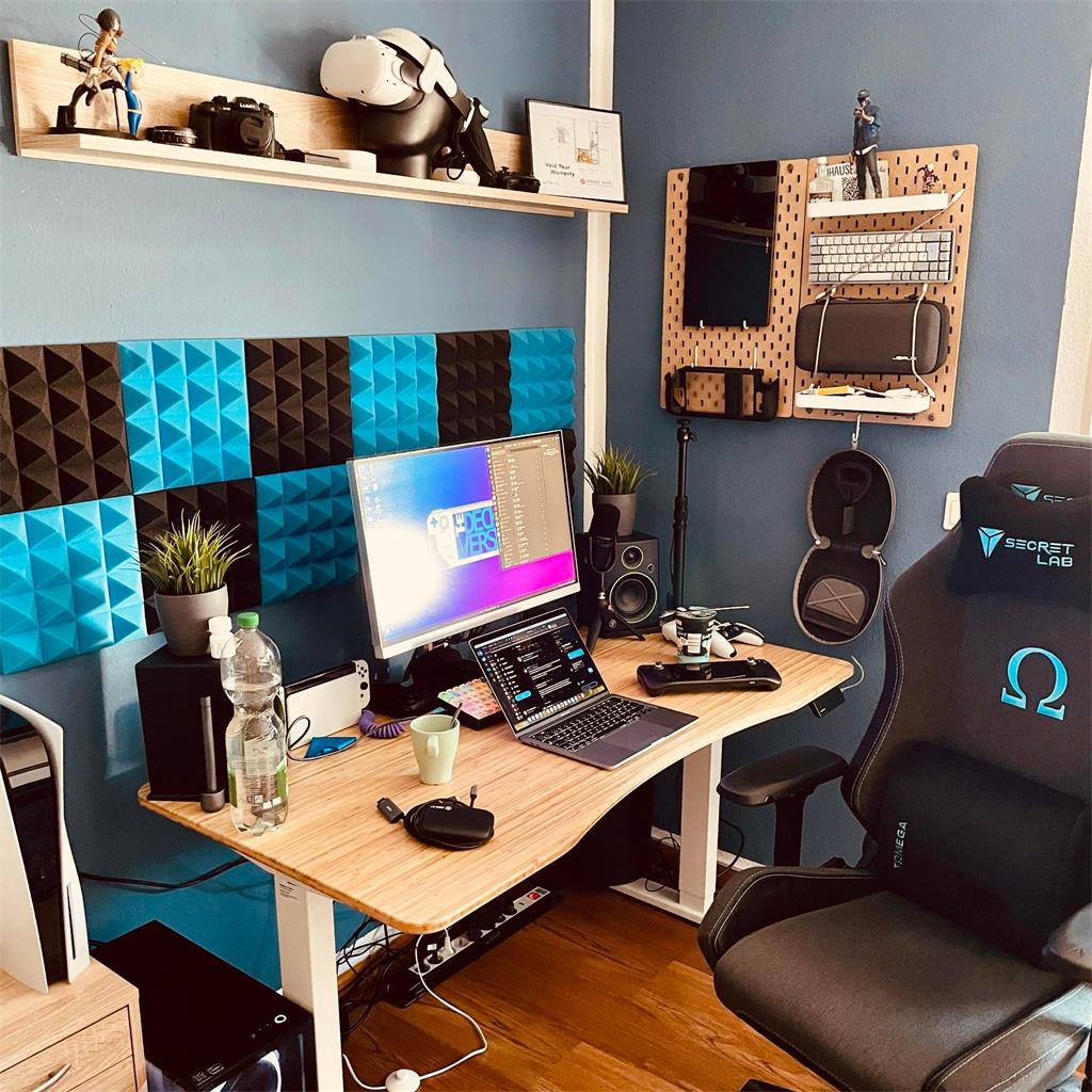 “This is my new home studio desk set up. It's perfect for long hours sitting and standing.”