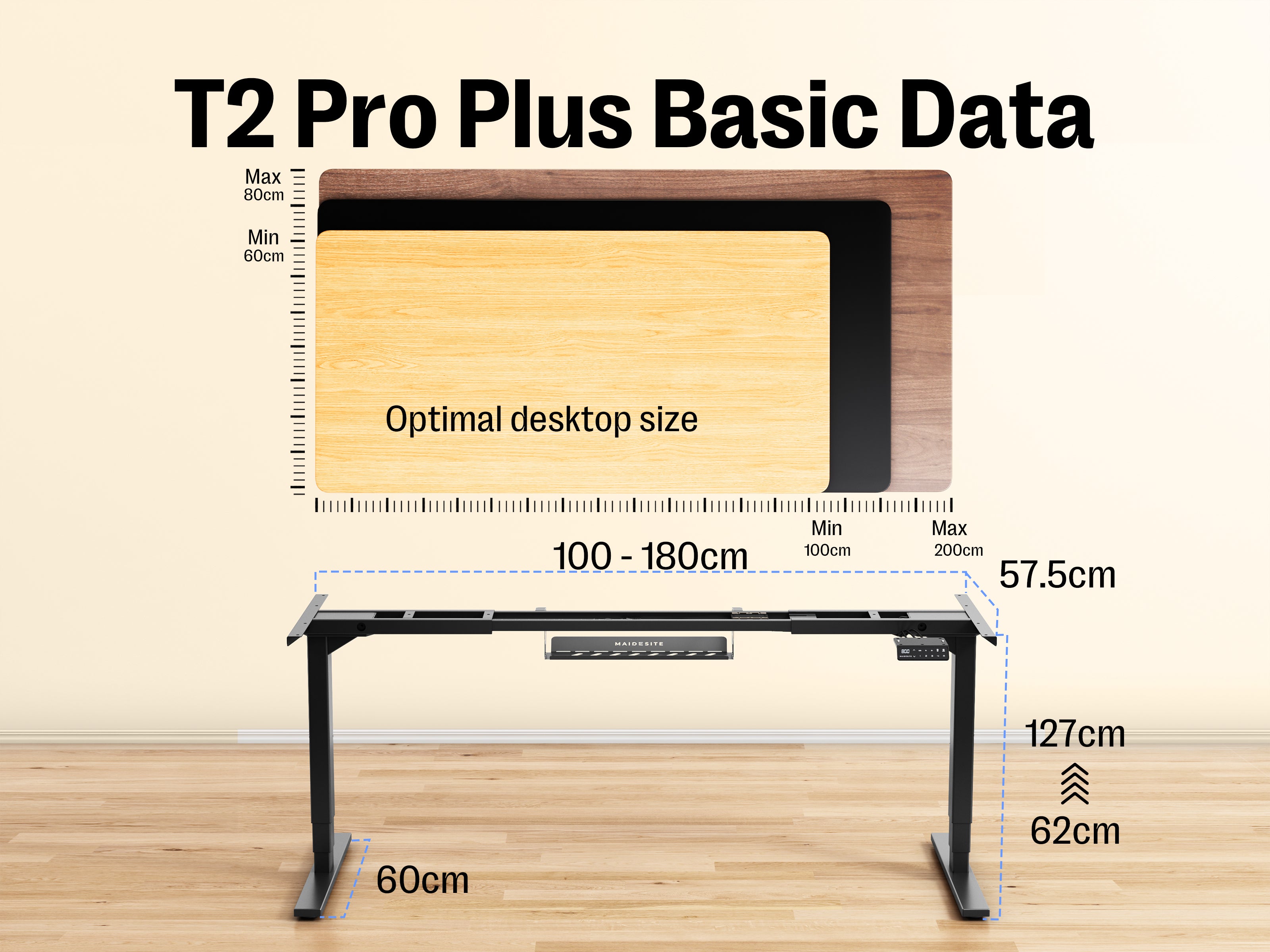 T2 Pro Plus Height-Adjustable Desk Technical Specifications